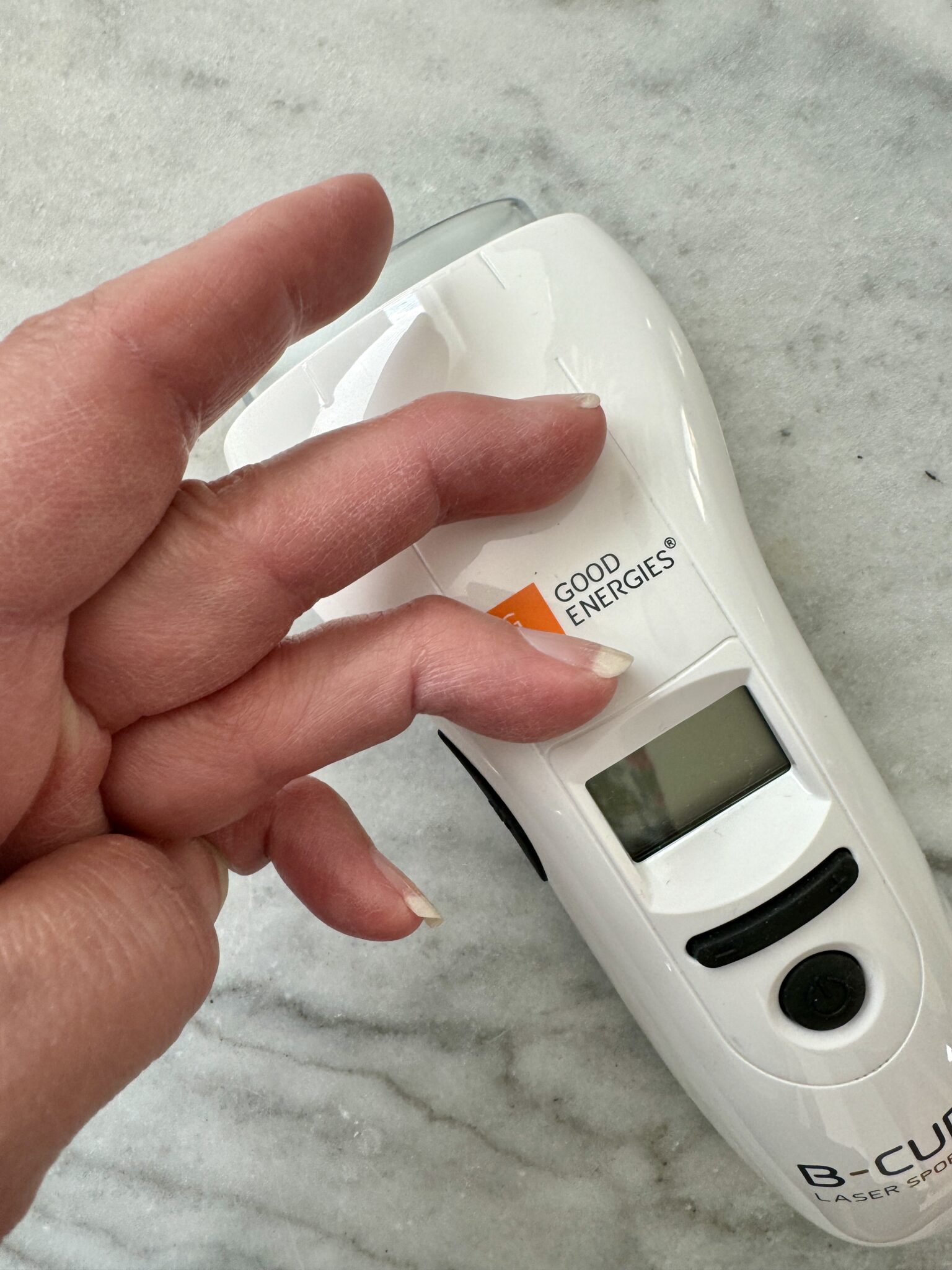 ”Aloitin B-Cure Laser Pro:n käytön noin vuosi sitten. Luin Terveystekniikka Oy:n käyttöohjeet huolellisesti. Aluksi hoidin kipeitä niveliäni kerran päivässä 6-8 minuutin ajan. Samanlainen, miedosti kuumottava tunne tuntui iholla laserin osuessa, mikä tuntui ihan siedettävältä. Pyrin olemaan säännöllinen hoidoissa, vaikka välillä arki meinaakin viedä mukanaan.”