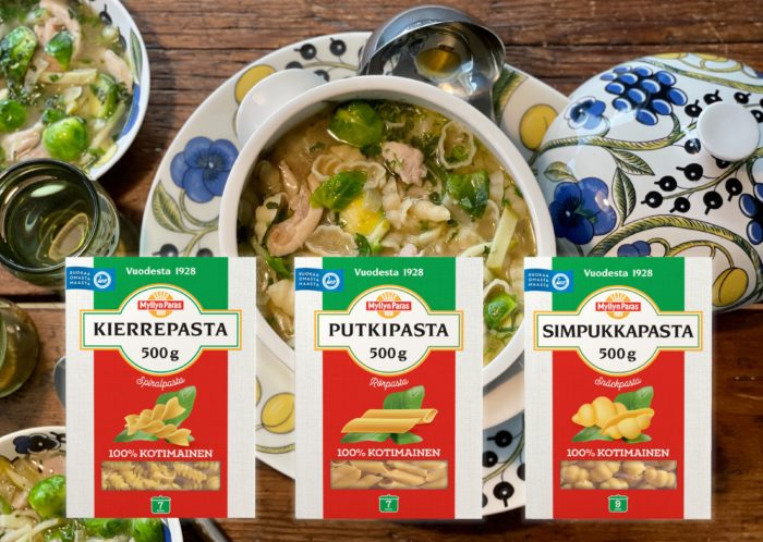 Tiesitkö, että suomalaista pastaa ei yleensä olekaan tehty täysin kotimaisista raaka-aineista? Me ei tiedetty, mutta se käy järkeen, koska pastoissa on tähän mennessä aina ollut mukana rakennetta tuovaa durum-vehnää, jota ei voi kasvattaa Suomessa, sillä siihenkin täällä on liian kylmä. Mutta nyt on kuulkaa tähänkin tullut muutos: Myllyn Paras toi viime vuoden keväällä ensimmäisenä Suomessa 100% suomalaisen kuviopastasarjan. Enää ei tarvitse mennä merta edemmäs simpukkaan. Simpukkapastan lisäksi uutuusvalikoimasta löytyy kierrepastaa ja putkipastaa, täysin kotimaisina, mikä ilahduttaa suuresti kotimaisuusastettaan huomioivia pastan ystäviä.