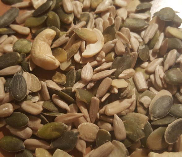 - Eikä unohdeta pähkinöiden pikkuserkkuja, siemeniä! Auringonkukansiemeniä, pellavansiemeniä, kurpitsansiemenä, seesaminsiemenä ja pinjansiemeniä voi käyttää vaikka mihin; leivän rapeuttamiseen, salaatin sattumiksi, naposteluun ja erilaisiin ihaniin pestomössöihin ja hummukseen. Yksi juttu pitää muistaa, siemenet täytyy murskata tai jauhaa kunnolla hampailla, muuten ne matkaavat mukavasti läpi elimistön ja ilmestyvät uudestaan lähes kokonaisina toisesta päästä. Pellavansiemeniä ei kannata ahmia paria ruokalusikallista enempää tai saat viettää pytyllä pitkiä aikoja. Niitä ei suositella lainkaan raskaana oleville tai alle 15 kiloisille lapsille suurina määrinä haitallisen kadmiumpitoisuutensa vuoksi.