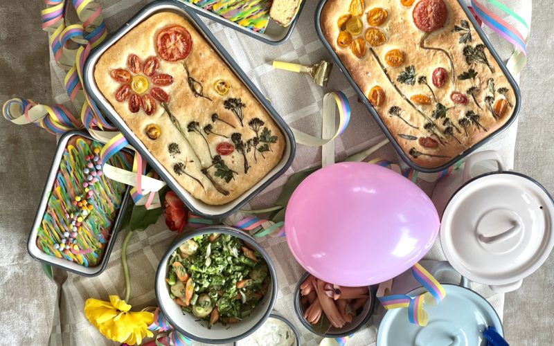 P.S. Myös vappuna pitää syödä muutakin kuin kakkua, joten pistä pöytä koreaksi kevätfocaccian sekä nauravien nakkien ja perunasalaatin avulla!